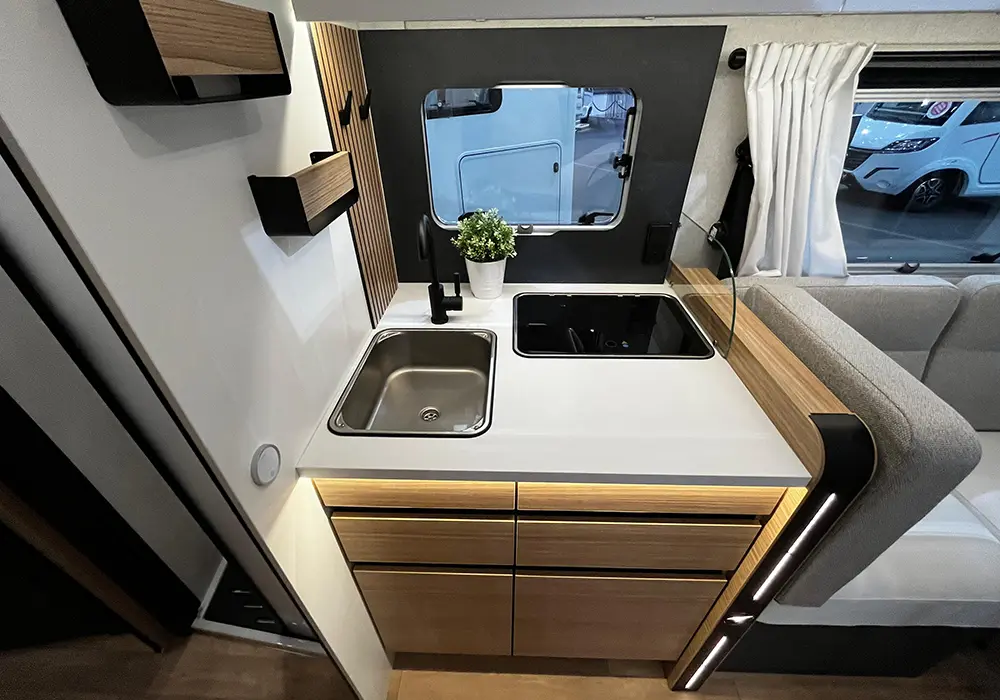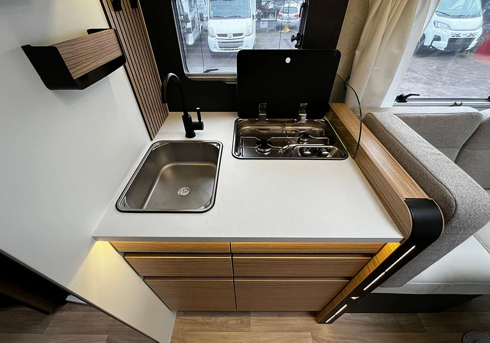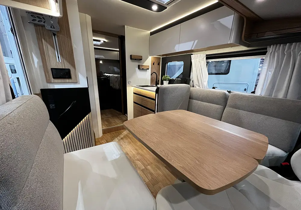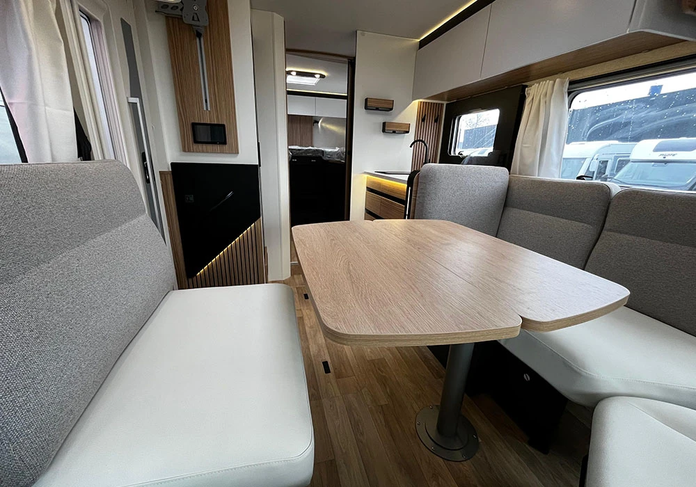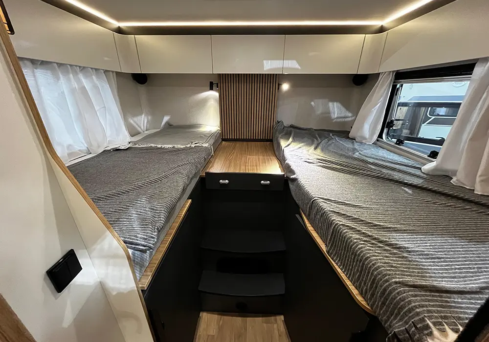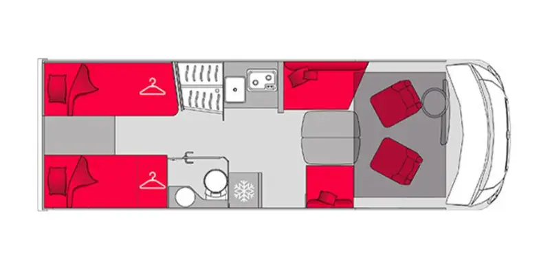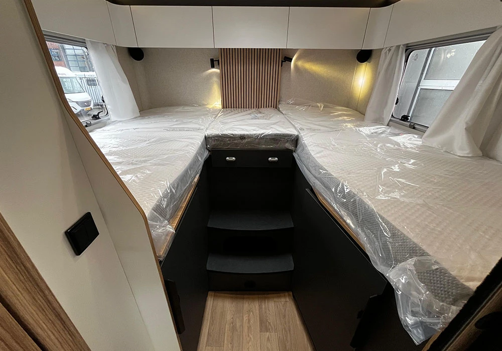 Deze nieuwe, luxe camper is van alle gemakken voorzien. Achterin de camper bevindt zich een tweepersoons lengtebed die u kunt ombouwen tot één groot bed. Voorin bevindt zich een tweepersoons hefbed die u kunt laten zakken in het rijgedeelte. Hierdoor blijft het zitgedeelte vrij voor gebruik. Het face-to-face zitgedeelte biedt veel leefruimte, en daarnaast is de camper ook nog eens een automaat. Kortom: met deze camper kunt u optimaal genieten!