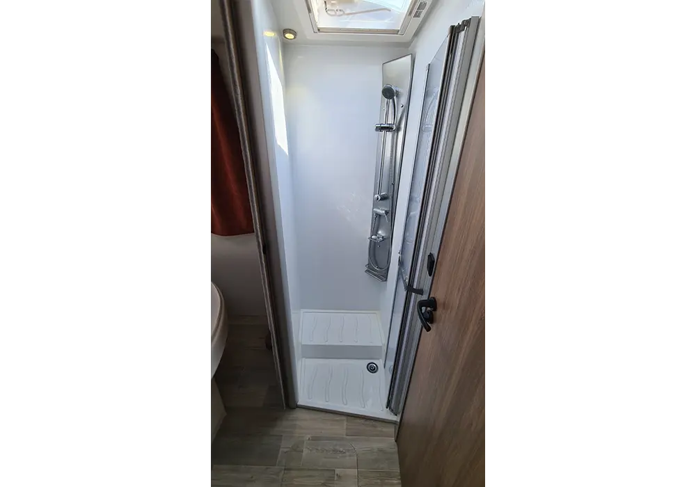 Door de face-to-face zitting in deze camper geniet u van extra veel leefruimte. Met een queensbed achterin de camper en een elektrisch hefbed boven het zitgedeelte biedt deze camper slaapruimte tot 4 personen. De douche en toilet zijn gescheiden van elkaar en apart af te sluiten waardoor u optimaal leefcomfort heeft!